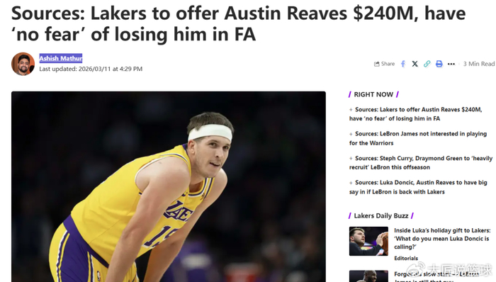 除此之外,Ashish Mathur还在长文中曝出,顺利续约小里之后,湖人队将积极追求字母哥。