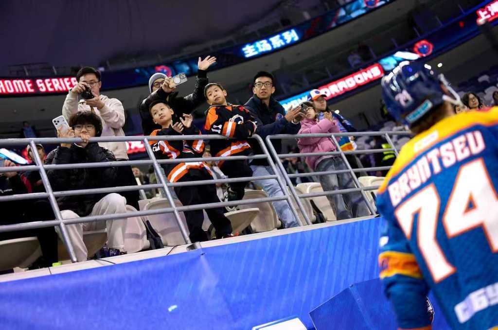 据澎湃新闻记者了解,观众中不仅有不少上海本地的冰球爱好者,以及当地冰球俱乐部的青少年球员,还有来自武汉、重庆、杭州等地的球迷以及各自地方冰球俱乐部的球员。